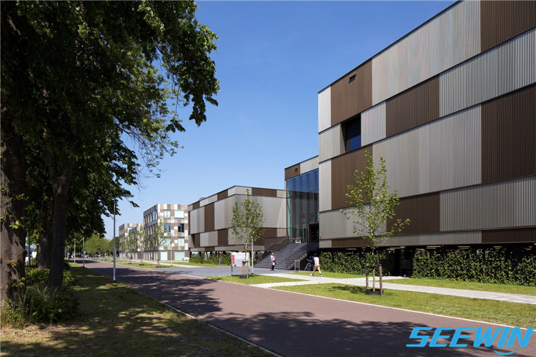 學校簡介:Ezinge 教育園區坐落于荷蘭Meppel,毗鄰Ezinge住宅區,介于鐵路和幾塊運動場之間。古銅色的條狀建筑群為五所中學和一座運動綜合體。盡管不同學校的教室和空間功能相互獨立,但位于中央的共享工作坊將它們相互連接。會客教室在公園里的平臺前,可以從遠處眺望有劇院和舞廳的多層主樓,及音樂和美術教室。SEEWIN詩敏家具將帶您體驗這座教育園區的公共休閑家具。