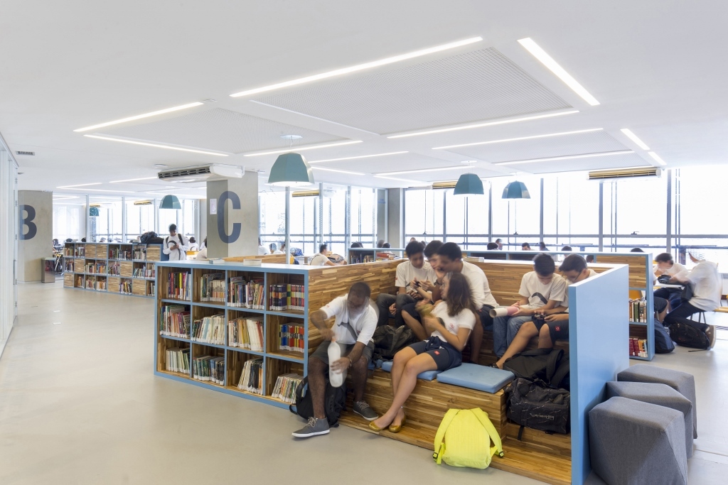 Bradesco 基金高中利用建設性的資源,為由銀行改建過來的建筑提供新的特性和生活,以適應教育設施,打造綜合學校空間。SEEWIN詩敏家具為您帶來巴西Bradesco 基金高中教學空間分享