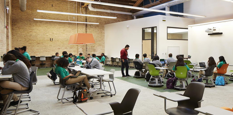 “當學生要開展一個混合學習課程的時候,可以申請一個獨一無二的教室使用。”SEEWIN詩敏家具為您帶來專門為這種教學模式設計的美國Intrinsic學校案例分享