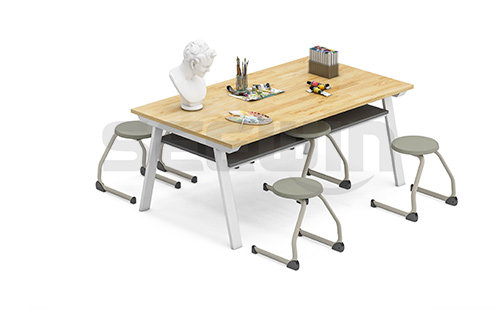 產(chǎn)品臺(tái)面采用橡膠木指接板,層板采用 E0 級(jí) MFC 板,選材健康安全。優(yōu)質(zhì)鋼架焊接,堅(jiān)固耐用。造型簡(jiǎn)潔經(jīng)典,可根據(jù)學(xué)生身高選擇不同高度,適應(yīng)功能教室的學(xué)習(xí)需求。